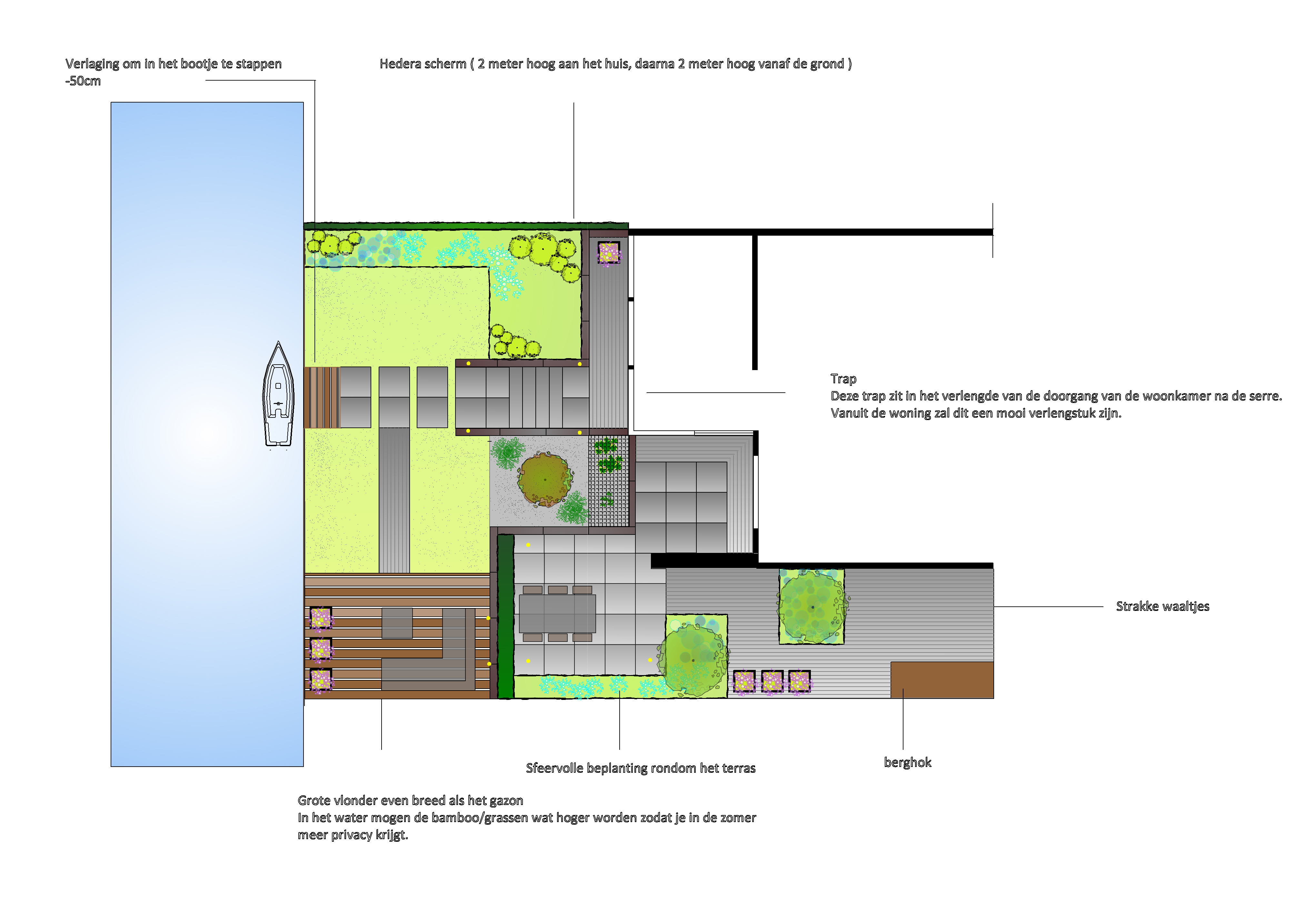 Tuinontwerp met hoogteverschillen en water