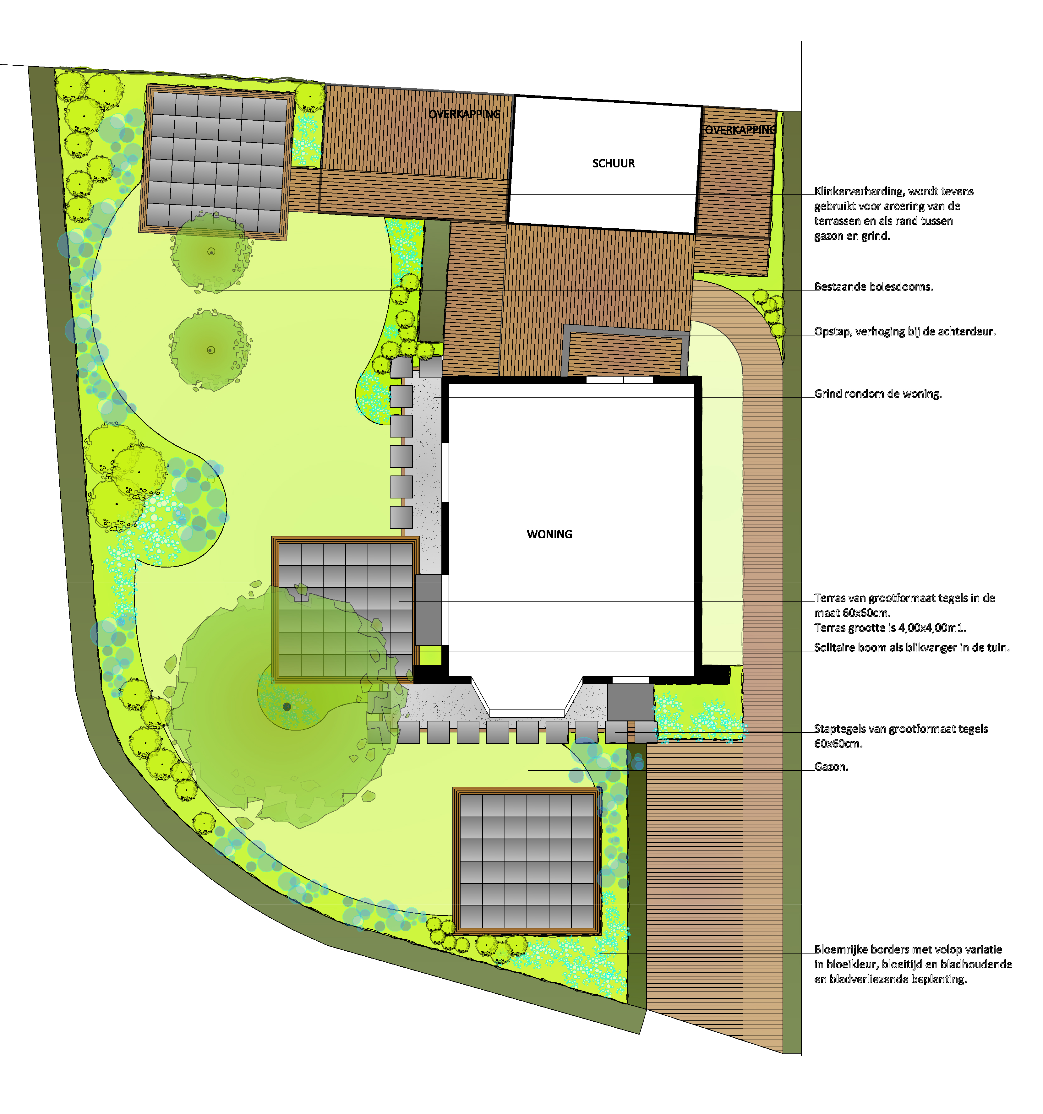 Bloemrijk tuinontwerp met speelse bestrating